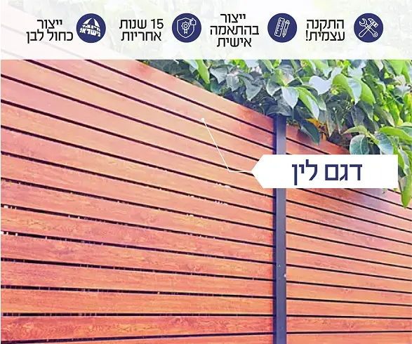 גדר אלומיניום צבע עץ מבית דגש אלומיניום – פרופיל 7 ס”מ מרווח 1 ס”מ